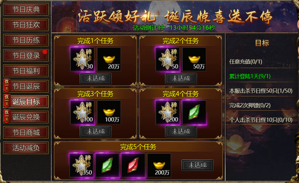 【活动内容】:10月1日当天,完成目标任务,即可领取诞辰目标奖励!