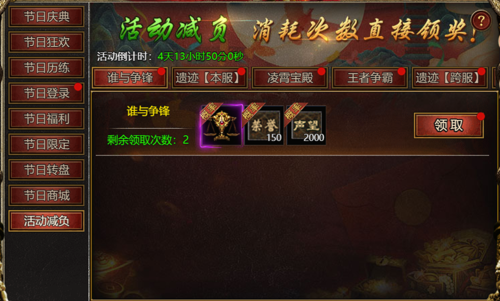 【活动内容】:活动期间,内可消耗对应玩法次数直接领取奖励!