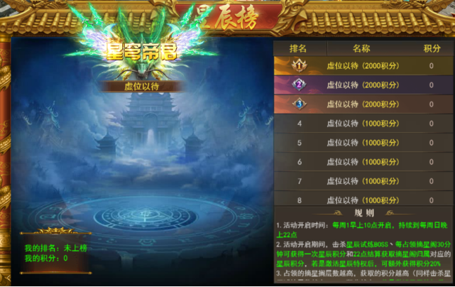 活动期间击杀星辰试炼BOSS、占领星辰阁30分钟可获得一次星辰积分,22点结算摘星阁归属积分;