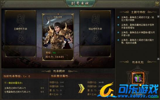 1)主角色、副角色均达到指定战斗力后,可提升传承等级