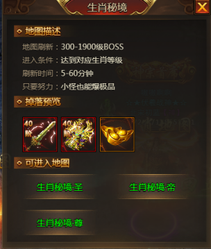 2.进入高级生肖秘境需要对应生肖套装等级达标