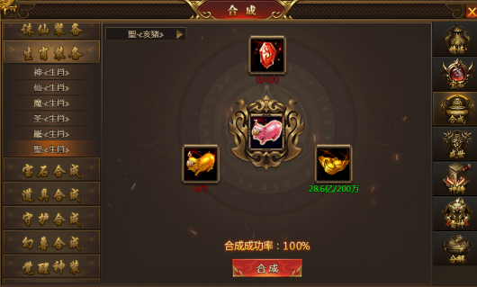 开服120天后,可在【锻造-合成】生肖合成出合成高阶生肖,高阶生肖有更高的属性效果,套装防麻痹概率更高!