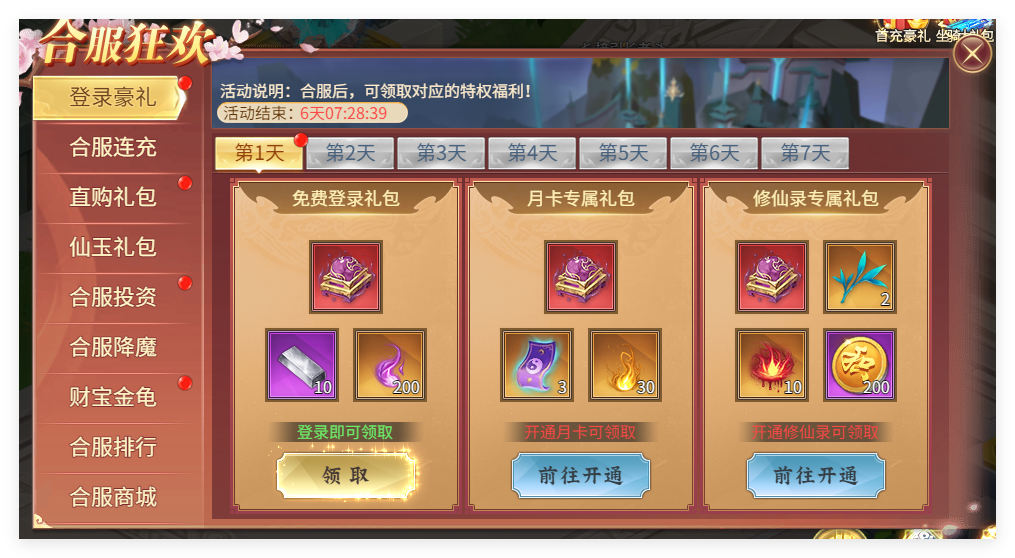 活动规则:登录即可领取奖励,月卡和修仙录用户可额外领取专属奖励