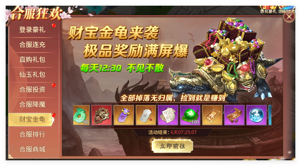 活动规则:每天12:30刷出金龟BOSS,全屏爽爆,人人都能拾取极品