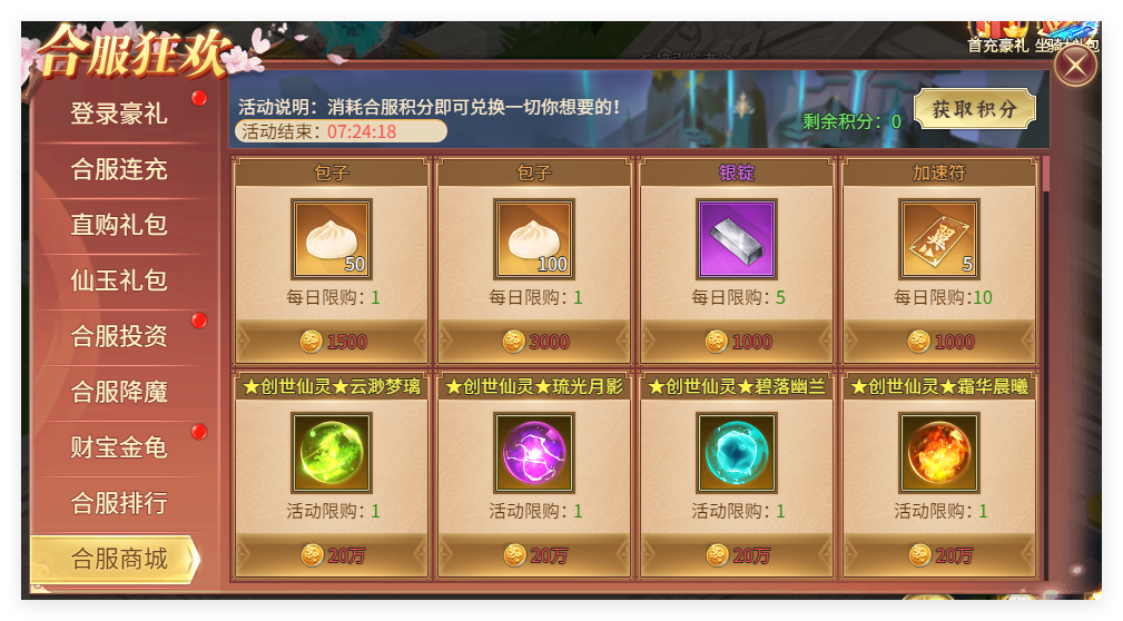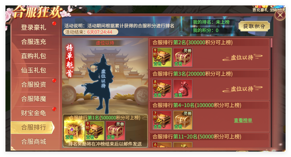 活动规则:活动期间根据累计获得的合服积分进行排名