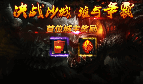合服后第三天开启首次攻城战,占领沙巴克公会的会长可在当天21:00-23:59领取极品道具奖励。霸王之心*50;公会红包*20。