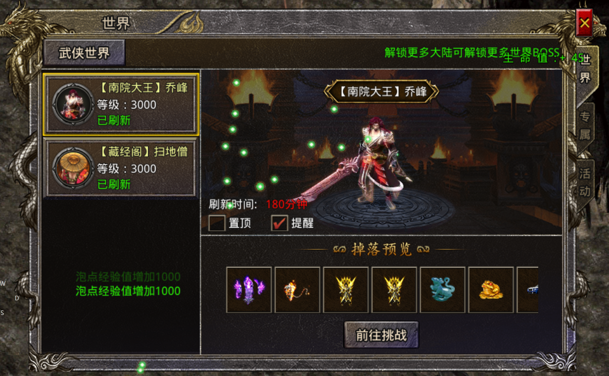 3.世界BOSS根据等级开放,等级越高可挑战的BOSS数量越多