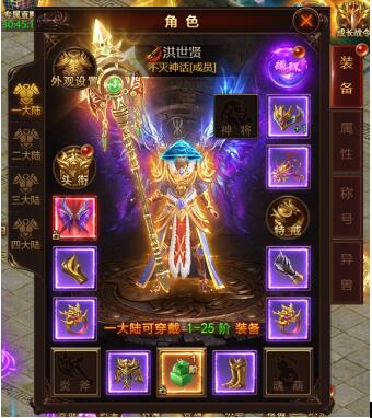 装备系统是玩家提升自身属性的主要途径之一,装备的种类多种多样,分为转生装备、特殊装备、特戒装备 等。转生装备需要转生等级达到指定等级即可穿戴。