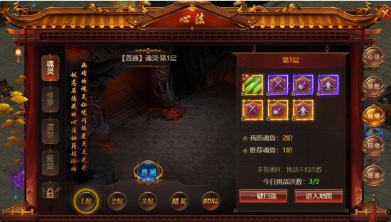 参与心法秘境挑战可获得心法技能以及升级材料。