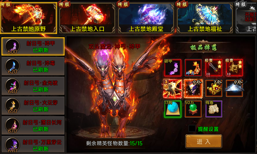 2. 上古禁地地图随开服时间开放,每张地图都有自己独立的一套古宝。