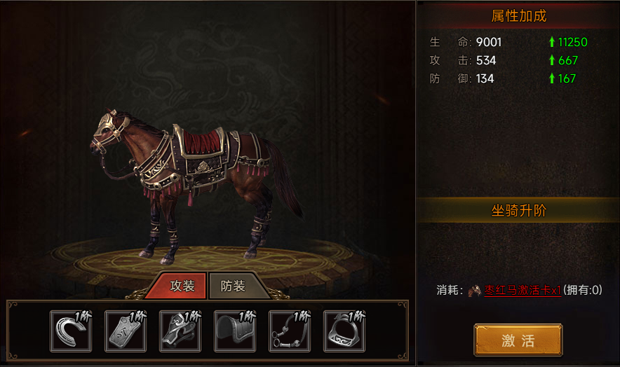 3. 为坐骑穿戴坐骑专属装备可以提升大量基础属性。