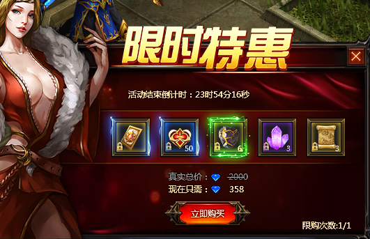 活动内容:活动时间内,玩家可在内查看每日购买内容,限时特惠每日仅可购买一次且仅限当日购买。机不可失,赶快来购买吧!