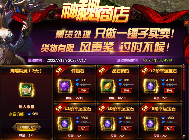 3.玩家也可以在神秘商店中购买许愿石许愿,许愿石许愿必得稀有品质以上宝箱。