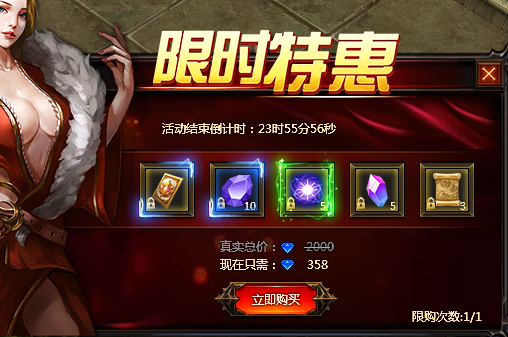 活动内容:活动时间内,玩家可在内查看每日购买内容,限时特惠每日仅可购买一次且仅限当日购买。机不可失,赶快来购买吧!