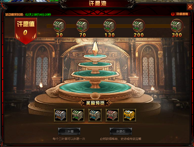 许愿池活动结束后,许愿值清零,但是未使用完三叶草和许愿石建议不要丢弃。