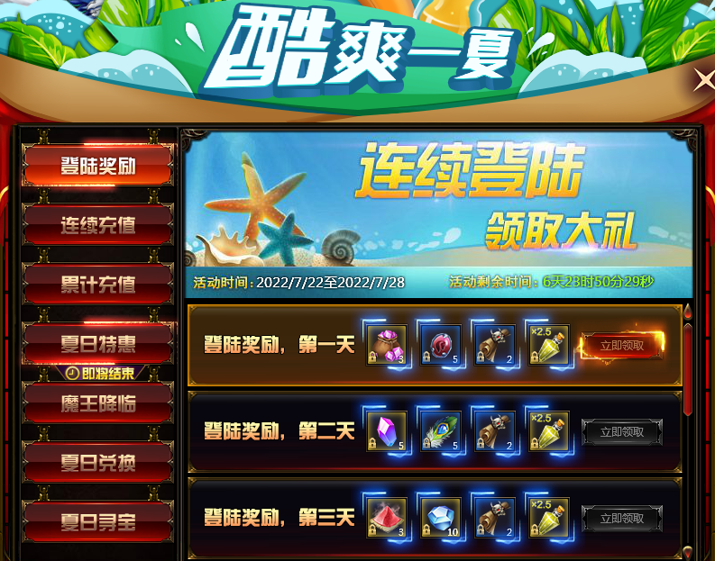 活动内容:活动时间内,玩家每天登陆游戏即可获得丰厚奖励。