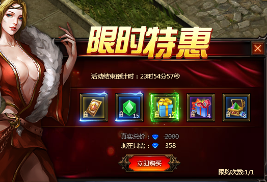 活动内容:活动时间内,玩家可在内查看每日购买内容,限时特惠每日仅可购买一次且仅限当日购买。机不可失,赶快来购买吧!