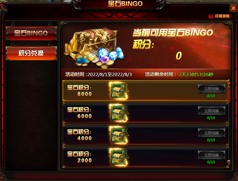 通过宝石BINGO获取的积分可以在积分兑换界面兑换丰厚奖励,快来参加吧!