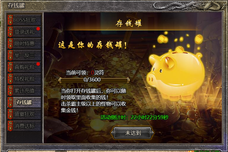 1.活动期间每次击杀霸主级以上怪物可以收集金钱。