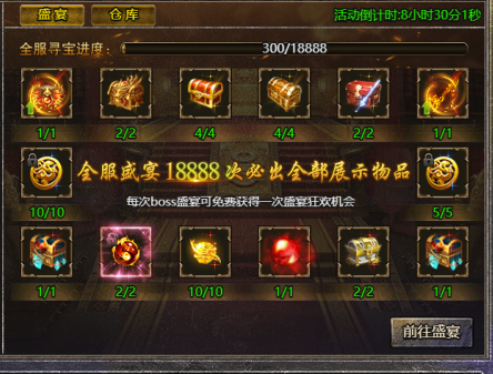 3.达到全服盛宴进度,将必会获得一份展示物品哦!