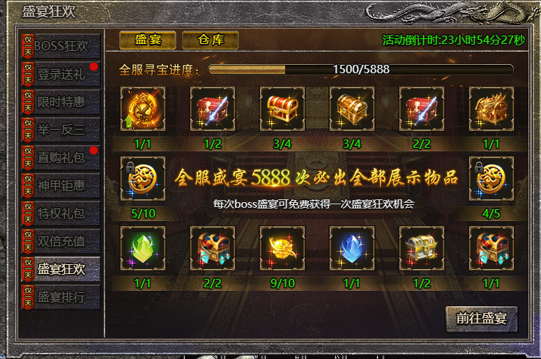 2.达到全服盛宴进度,将必会获得一份展示物品哦!