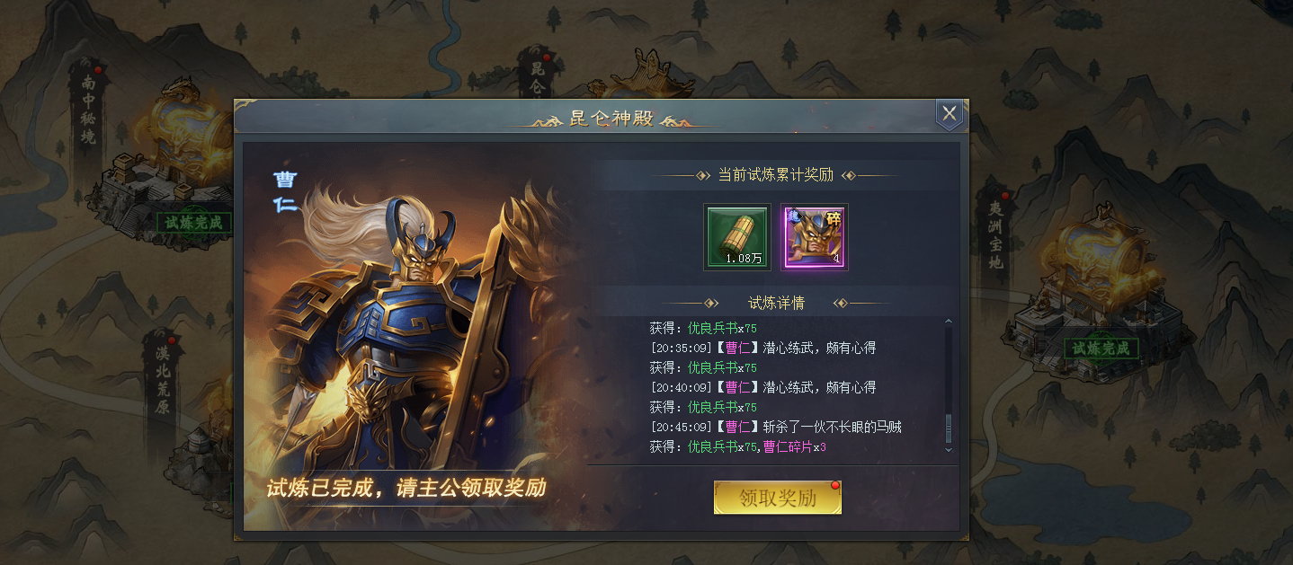 将领的品质越高,试炼时间越长,获得的奖励也越丰厚