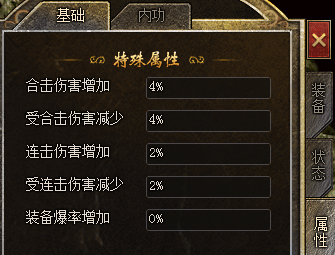 受合击伤害减少:受到他人合击伤害时可以减少合击伤害的概率