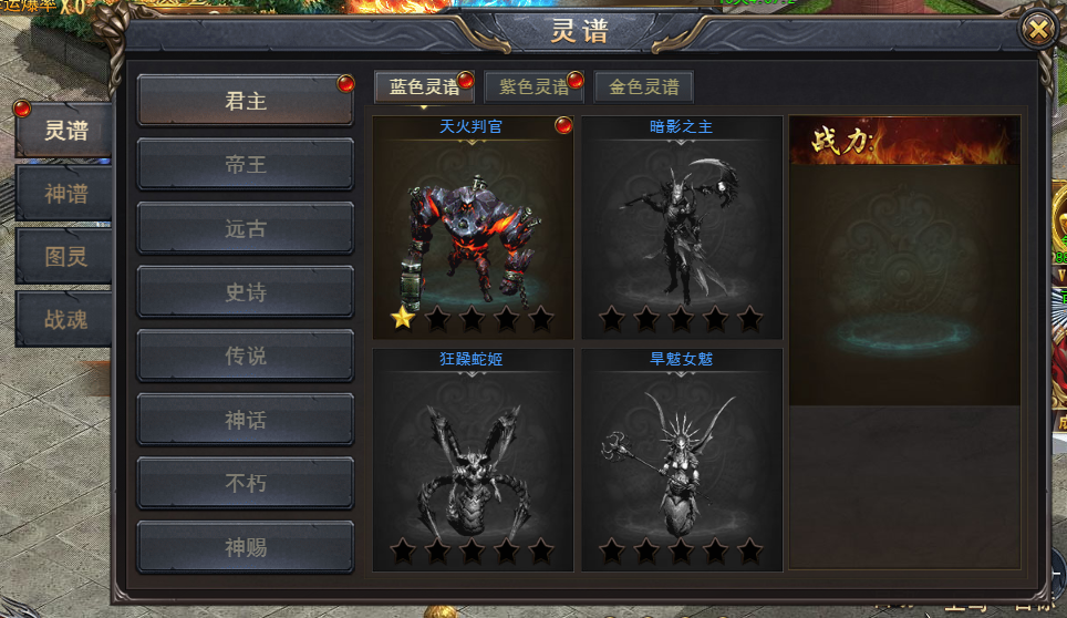 战魂:收集一系列的灵谱可以领取相对应奖励