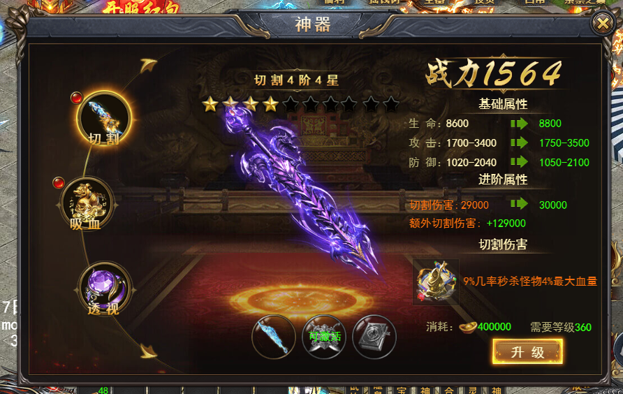切割以及护体可以通过元宝进行升级提升角色作战实力,切割更是可以学习技能,大幅度提升角色强度