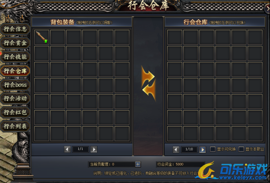 把多余装备捐献到行会仓库,可获得贡献度,同时可消耗贡献度兑换行会仓库内的道具;
