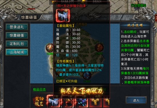 活动介绍:砸蛋活动是游戏中的一个趣味环节,玩家通过参与活动有机会获得稀有的神兽。