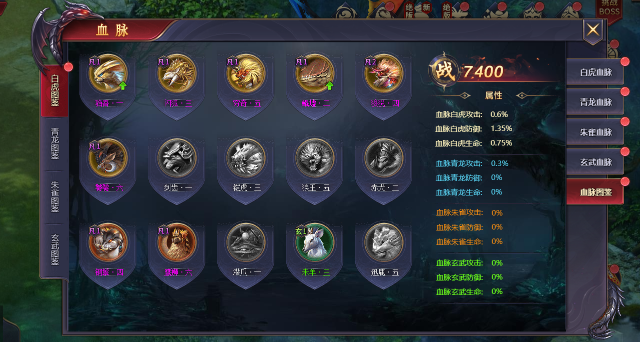 ③ 玩家可以使用普通血脉点亮血脉图鉴获得属性加成