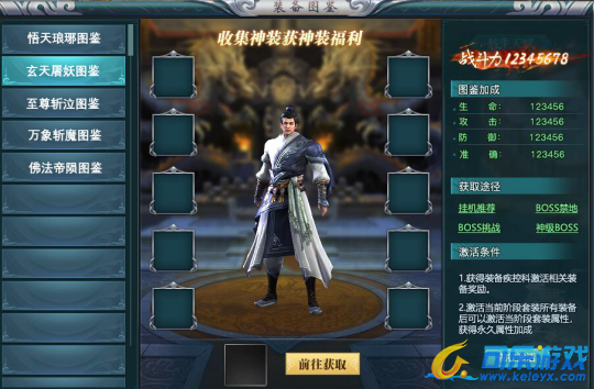 收集红色以上装备可激活图鉴,每激活一件装备图鉴可领取一份奖励
