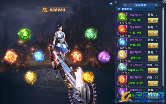 服用不同丹药可提升不同的属性,极品丹药可百分比提升玩家基础属性