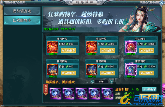 活动有超级折扣,购物车添加道具数量越多折扣力度越大