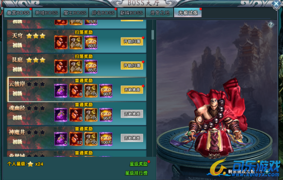 挑战不同的关卡可获得奖励,在不同时间内通关可获得不同的星数评定,达到三星后可进行扫荡