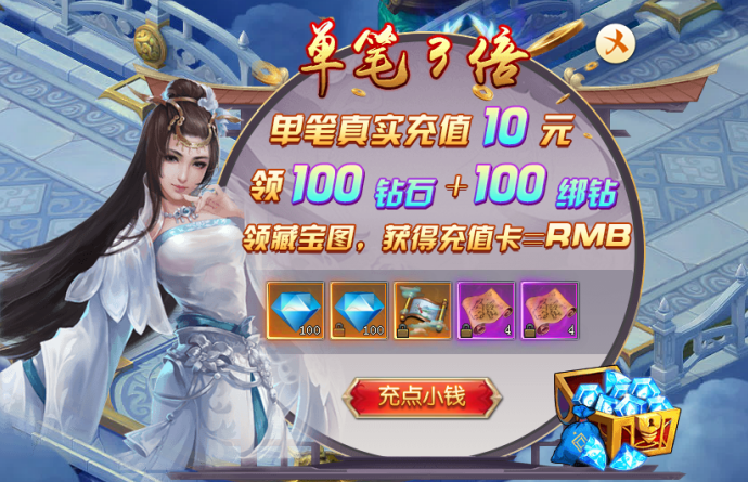 活动内容:充值获得3倍钻石返利+额外道具