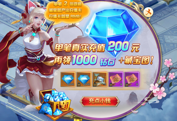 活动内容:充值获得2倍钻石返利+额外道具