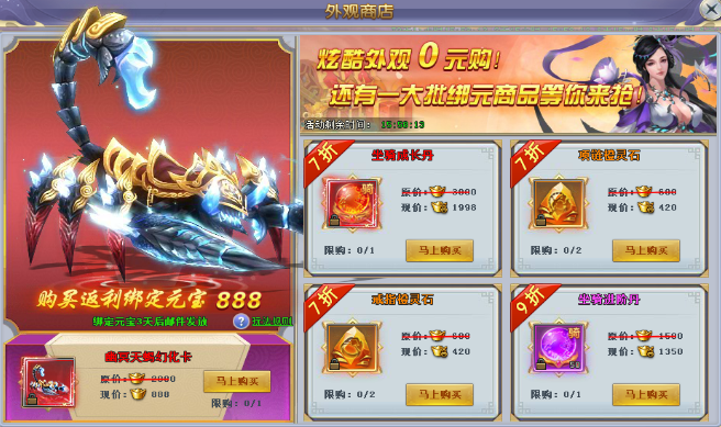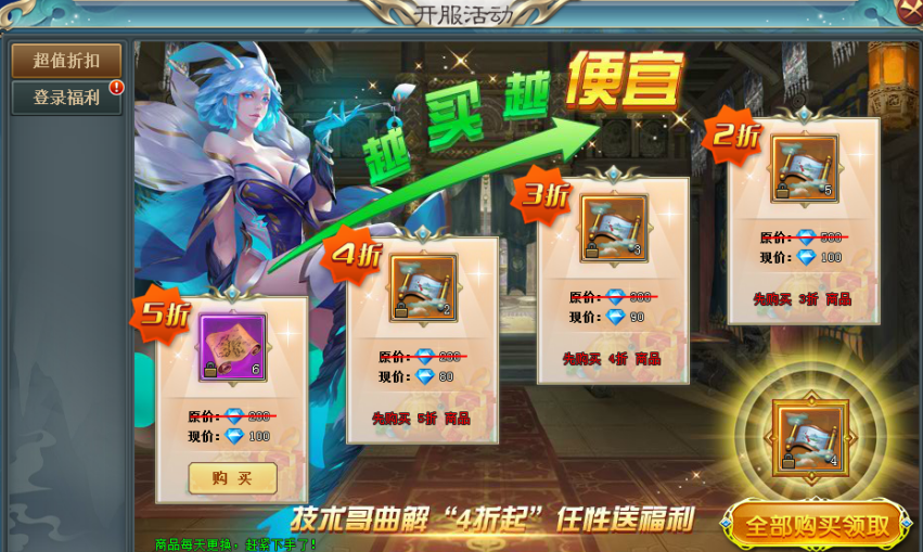 活动内容:消耗钻石购买大量打折商品,购买越多折扣越高