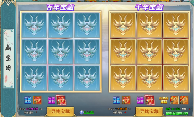 活动内容:消耗不同藏宝图可进行寻宝,每次寻宝都会获得丰厚奖励,完成全部挖宝任务后可获得珍稀大奖