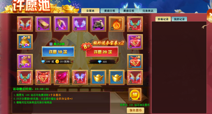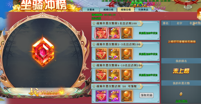 玩法2:根据许愿池的抽奖次数进行排名(日榜和总榜),排名越前奖励越丰富
