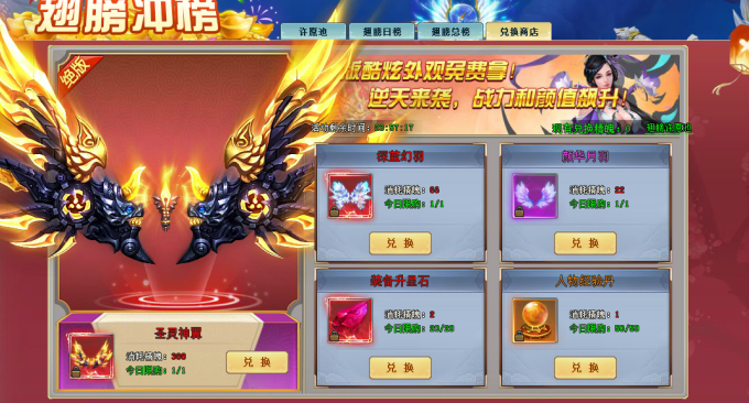 玩法3:消耗精魄可兑换珍稀的翅膀资源