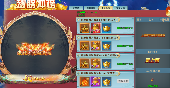 活动内容:满足不同条件后可上榜,上榜后可获得丰厚的珍稀奖励