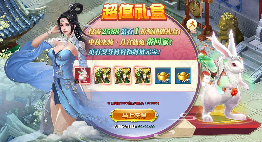 【活动内容】:超值礼盒-仅需2588钻石1折领取超值礼盒