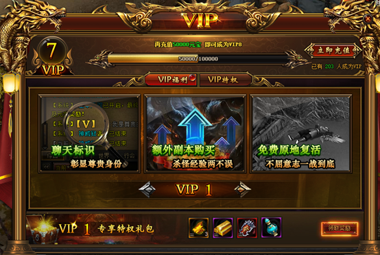 2. 首次达到对应的VIP等级时,可与领取丰厚礼包。