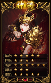 武神进阶神将后,主修防御,理所应当的成为了整个游戏里防御最高的职业,并且擅长以守为攻,运用自如,更可将神力外放,灼烧敌军,也有进行犯上,当对上一名神将之时,是否进攻都需谨慎思考。