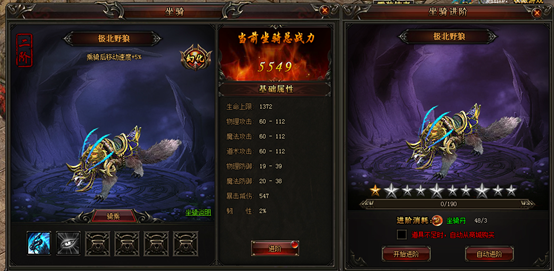2. 坐骑一阶段为10星,升满后即可进入下一阶段。