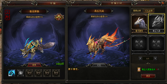 3. 坐骑可大幅增加人物的属性,等级越高增幅越多。