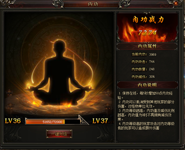 1根据其内功值来升级内功等级,内功可抵消受到玩家的伤害,对怪物无效。