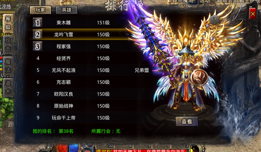 排行榜即提供一个玩家排名的功能,可以在此看到和自己一个服的其他大神级的玩家。不同的类别排行依据不同。